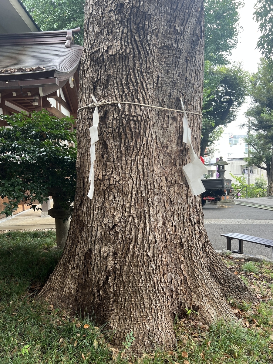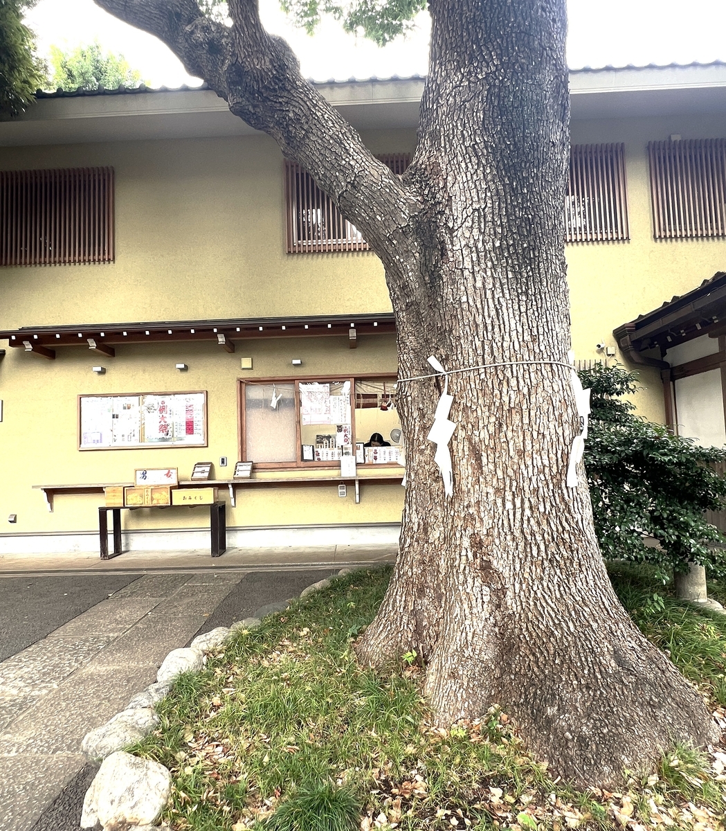 社殿の右側に社務所がありますが、その前に御神木のクスノキです。